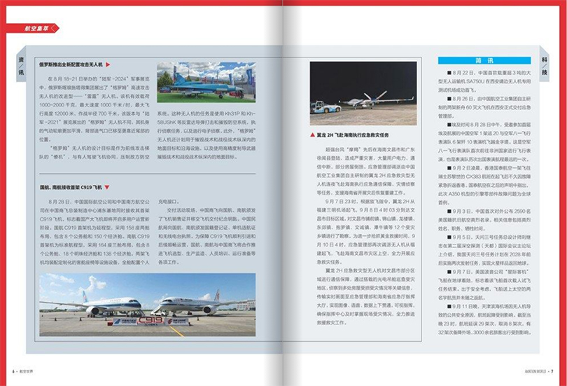 《航空世界》杂志内容涵盖了航空工业、民航、军用航空、航空技术、航空历史等众多领域。每期杂志都会邀请业内专家为读者带来深入的分析解读,从专业的角度为广大读者呈现航空领域的最新动态。此外,杂志还以大量的篇幅介绍了世界各地的航空博物馆、航空遗址、航空英雄等相关知识,使读者在阅读的过程中不仅能了解最新的航空资讯,还能感受到航空文化的魅力。